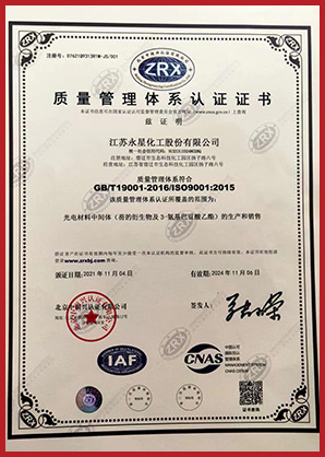 江蘇永星化工股份有限公司成立于2010年,位于江蘇省宿遷市宿豫區(qū)生態(tài)化工科技產(chǎn)業(yè)園揚(yáng)子路6號(hào),注冊資本3215.463萬元,占地105畝,分為南北兩個(gè)廠區(qū)。
